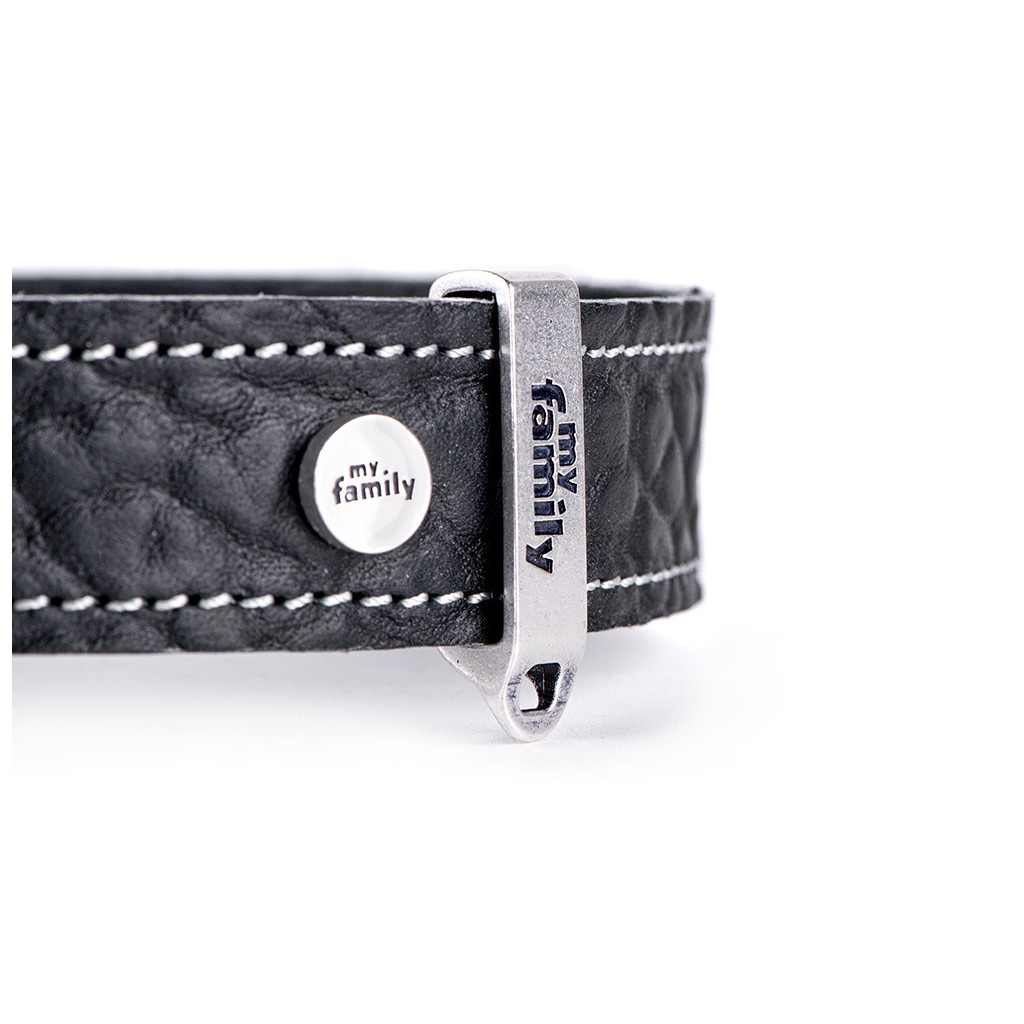 هل يتوق كلبك إلى مغامرات ملحمية ولمسة من الأناقة الوعرة؟ يُضفي طوق كلب ماي فاميلي إل باسو الجلدي الأسود روح الغرب المتوحش على رفيقك الكلب المحبوب. صُنع في إيطاليا، يجمع هذا الطوق بين التراث الغني للحرفية الجلدية الإيطالية والجمالية الغربية المميزة، وهو مثالي للكلاب التي تحب الاستكشاف.