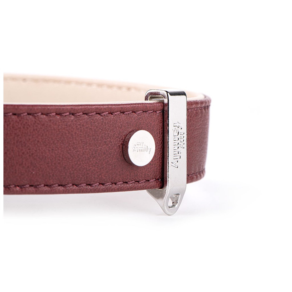 Elevate your dog’s style with the My Family Hermitage Genuine Leather Dog Collar in a sophisticated Bordeaux and Cream design. Crafted with passion and precision in Italy, this collar from the exclusive Hermitage Collection embodies “Made in Italy” excellence and the rich goldsmithing tradition of Valenza, where My Family’s roots lie. This isn’t just an accessory; it’s a statement of elegance, perfect for special occasions or adding a touch of luxury to everyday walks.